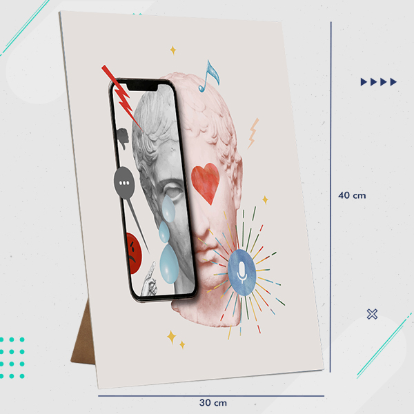 A diferencia de carteles colgantes o vinilos de pared, el display de mesa no requiere instalación ni permisos de espacio. Se coloca, se despliega su peana trasera y listo. En segundos tienes una pieza de comunicación estable, profesional y perfectamente vertical.