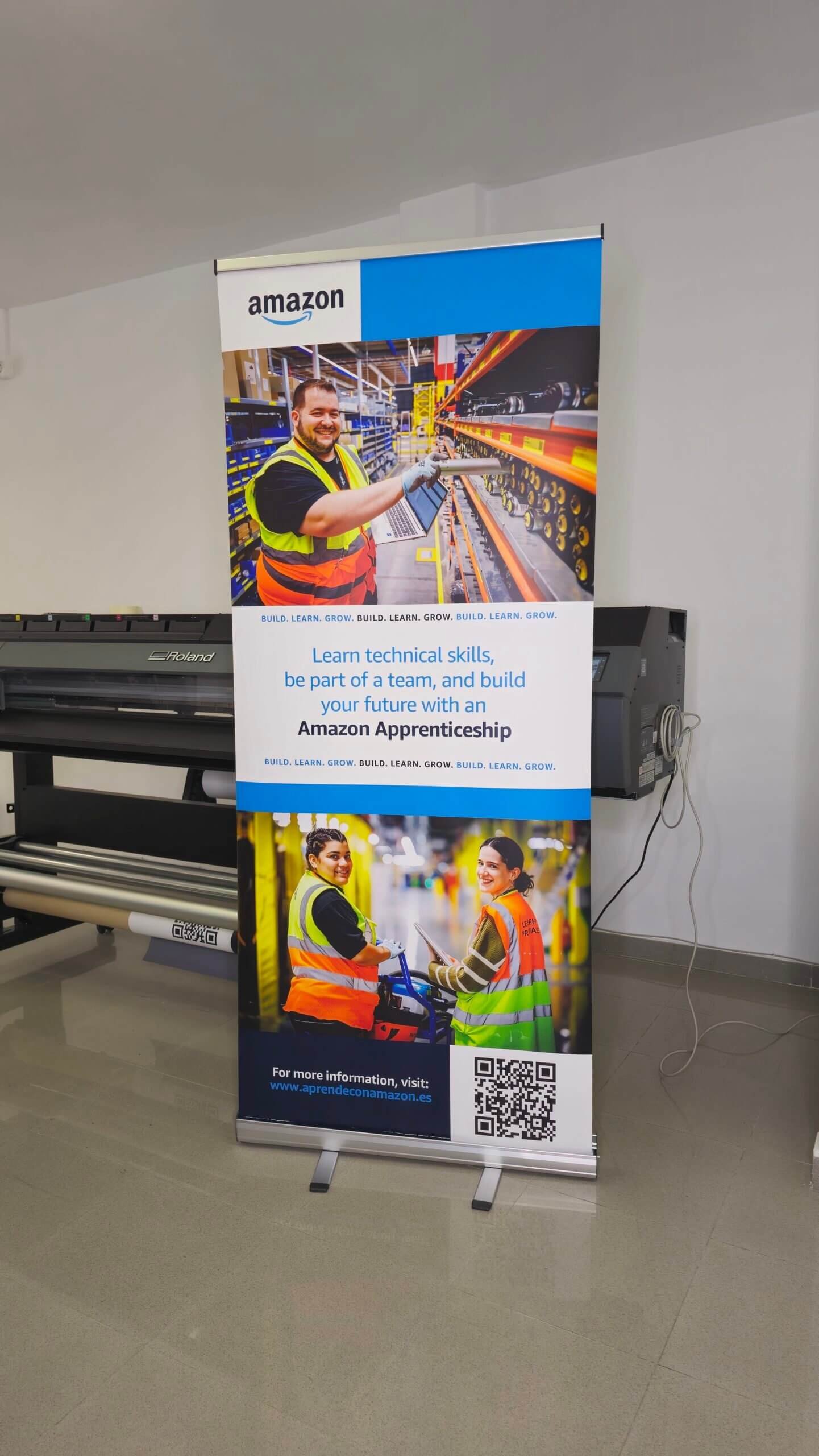 Roll Up Baratos impresos a todo color en lona de PVC de 510 gramos, ideales para ferias, eventos y puntos de venta. Nuestros banners enrollables combinan calidad y precio económico, con una estructura resistente de aluminio y acero que garantiza durabilidad y una presentación profesional.