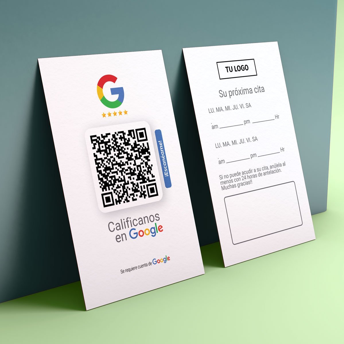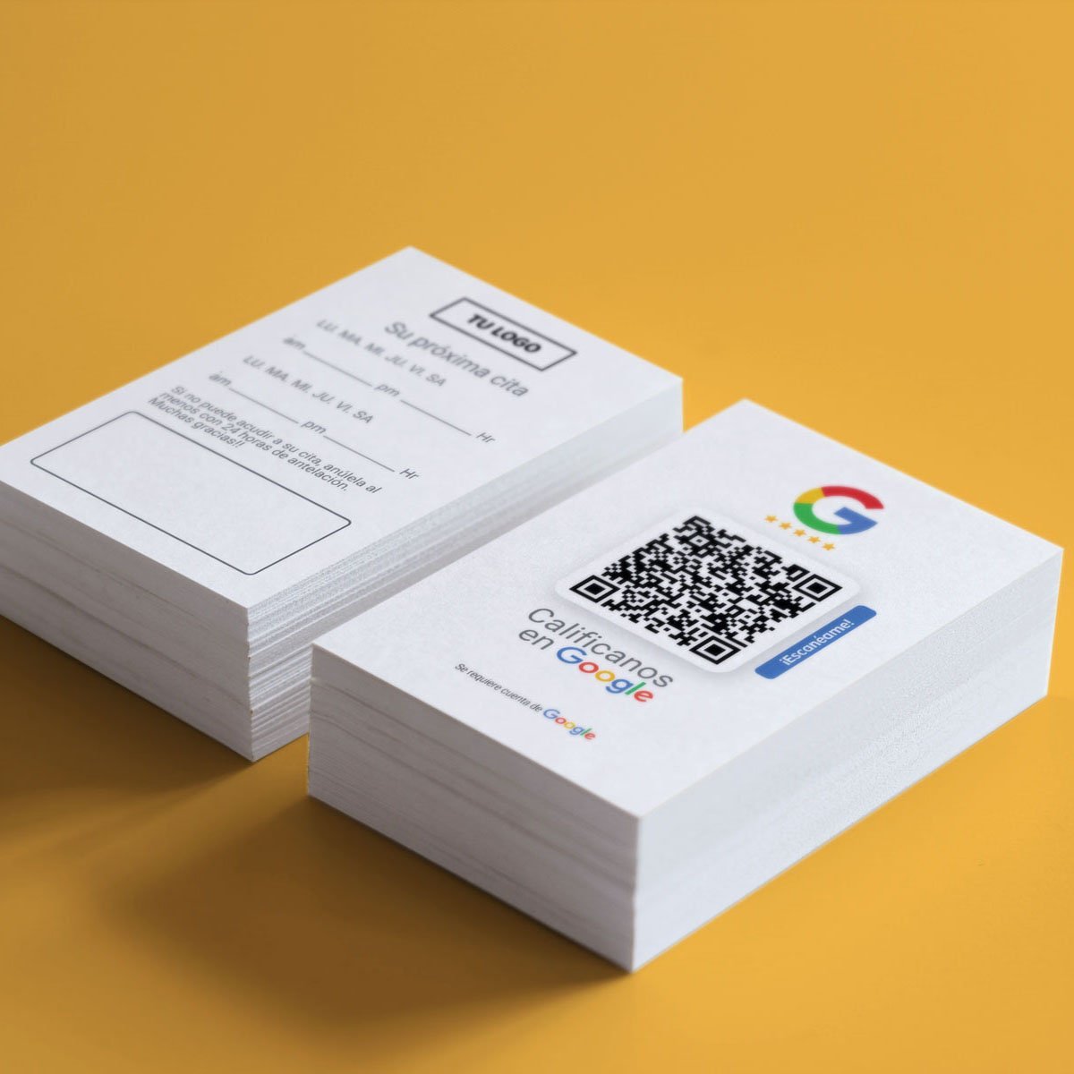 En un mundo digital donde las reseñas online marcan la diferencia, es fundamental destacar y generar confianza. Por eso, diseñamos tarjetas físicas de alta calidad, personalizadas con tu logo, colores y un código QR que dirige a tus clientes directamente a tu página de reseñas. ¡Olvídate de complicaciones! Nosotros nos encargamos de todo el diseño gráfico y de generar el código QR adaptado a la plataforma que elijas.